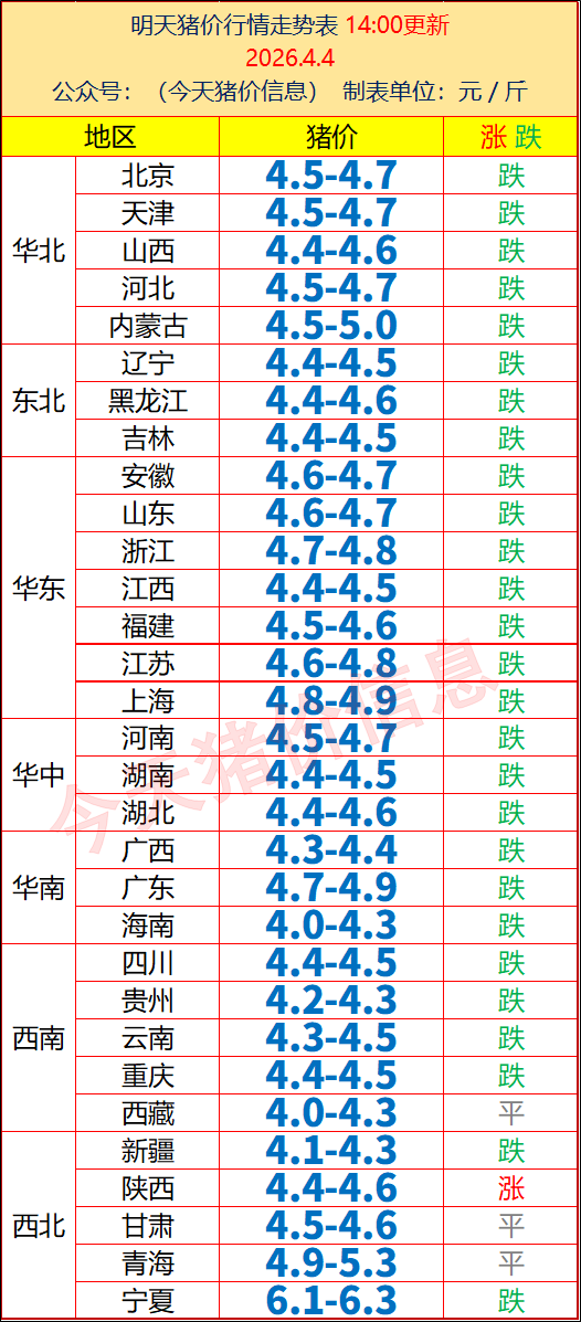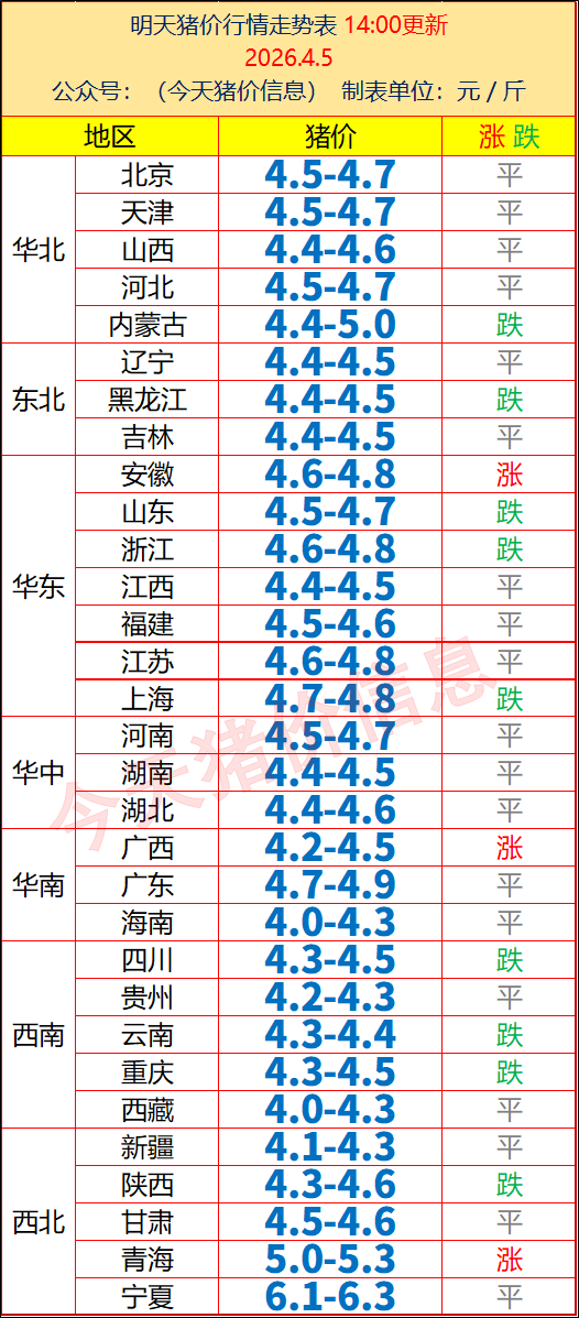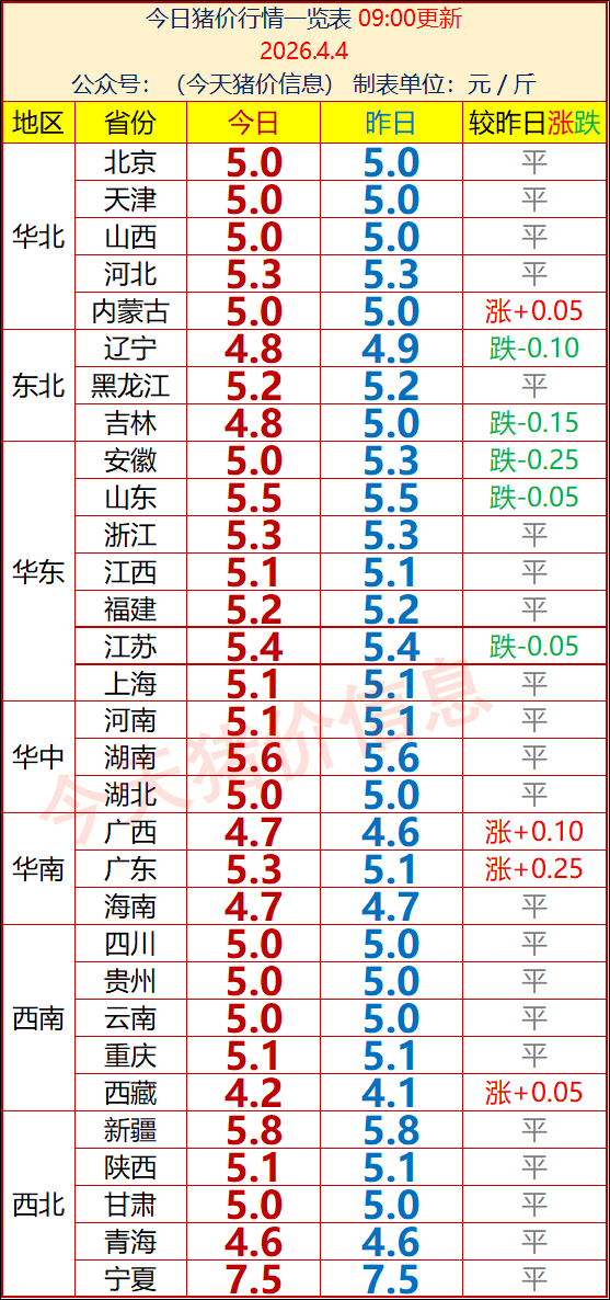 各地区最新猪价行情信息